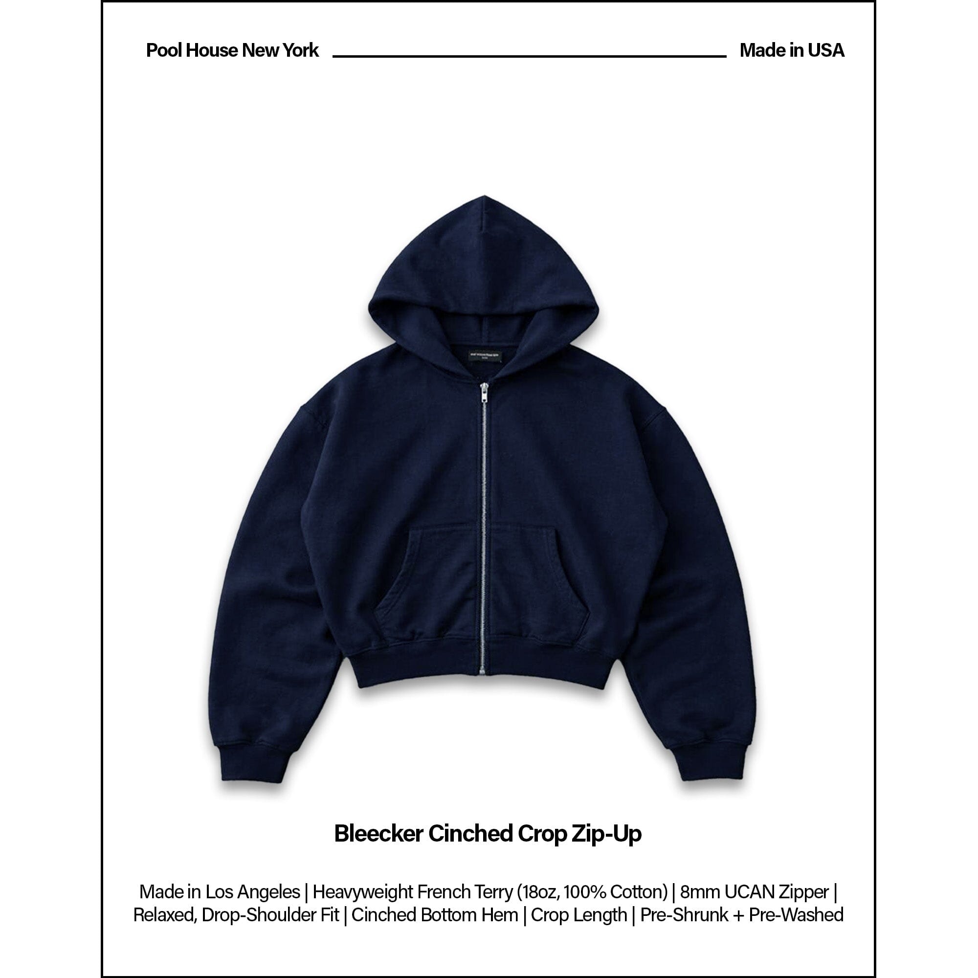 The Bleecker Cinched Crop Hoodie features a relaxed, drop-shoulder silhouette with a cropped length that falls just below the belt line. The adjustable cinched bottom hem lets you fine-tune the length — wear it slightly cropped for a sharper look, or lower it for a more relaxed look.