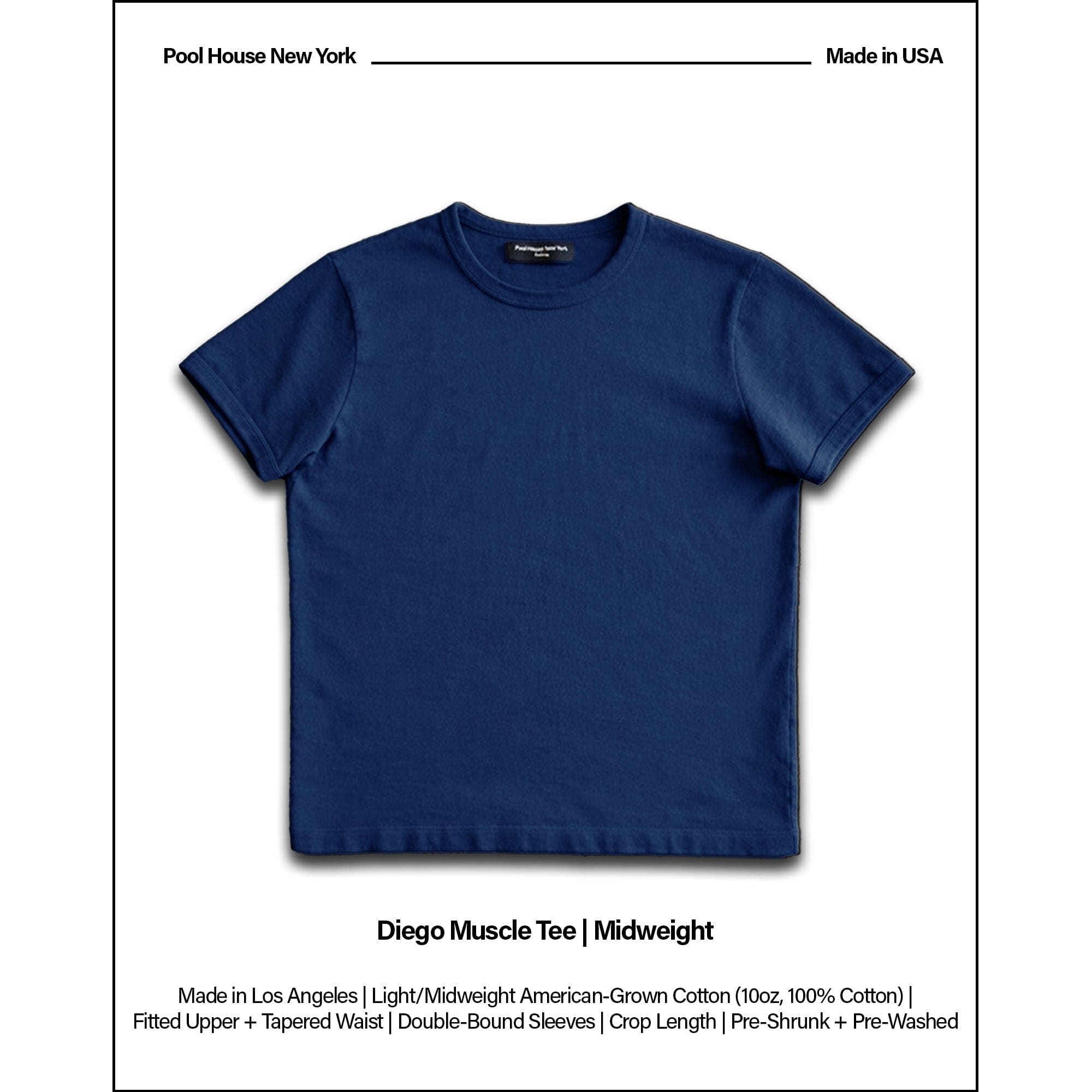 * Our Diego Tee is -1/2 inch shorter than our Los Feliz Tee (Standard Length), and +1/2 inch longer than our Tony Tee (Standard Length).