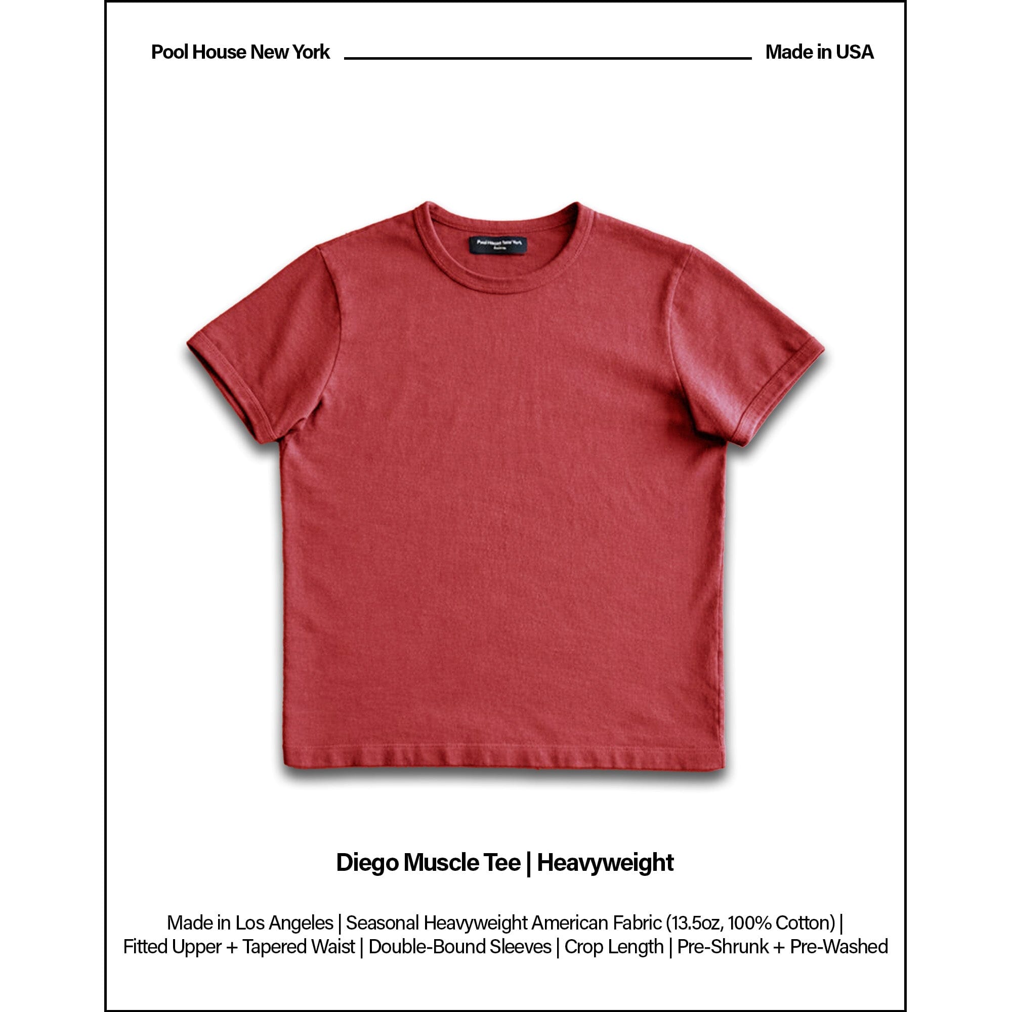 The Diego Muscle Tee, designed in collaboration with Seth Lopez, features a length that sits slightly longer than the Tony Tee and slightly shorter than the Los Feliz Cropped Muscle Tee — made to land right where you want it, every time.