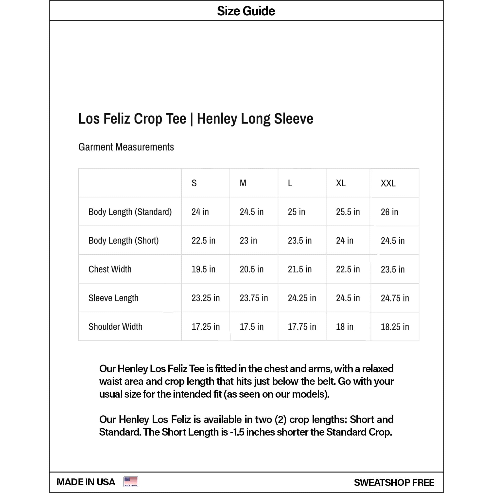 * Short Length is -1.5 inches shorter than our Standard Crop Tee.