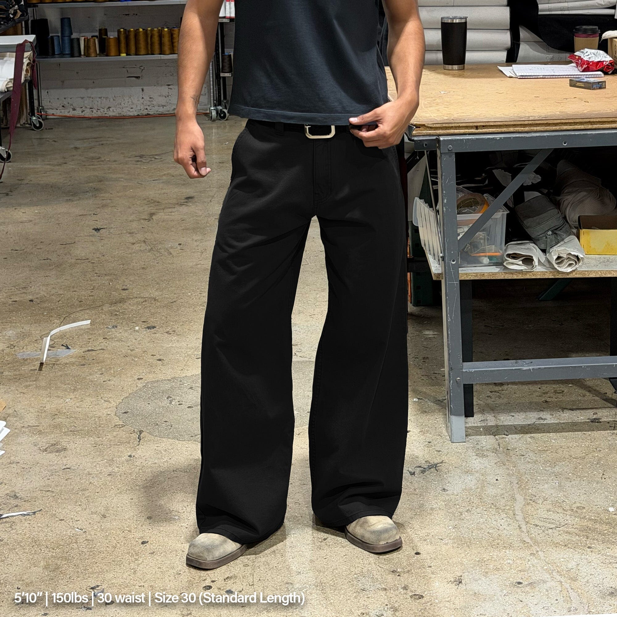 The fabric’s weight gives the pants structure, while our signature wide-leg cut and front pleats add movement and ease. Designed for durability, tailored for comfort — these are not your average pants.